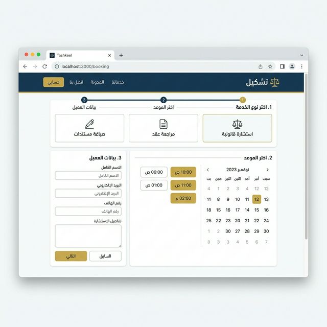اجعل الحجز أسهل من أي شيء. يختار الموكل نوع الاستشارة، يحدد التاريخ والوقت من تقويم حي يعكس توفرك الفعلي، ويستلم تأكيداً فورياً. لا مكالمات، لا فوضى.