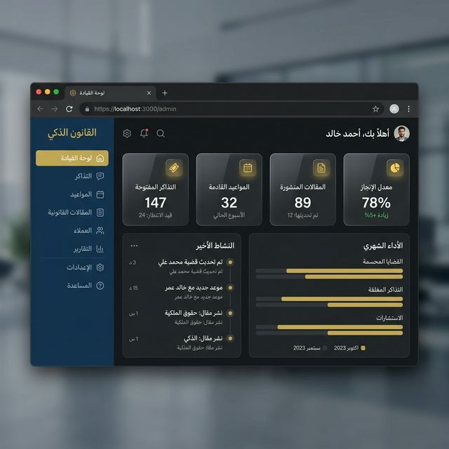 نظام إداري ذكي يُجمع كل بياناتك في مكان واحد. احصل على إحصائيات حية للمذكرات والمواعيد والمحتوى، مع خلاصة آخر التحركات ومعدلات الأداء اليومية.